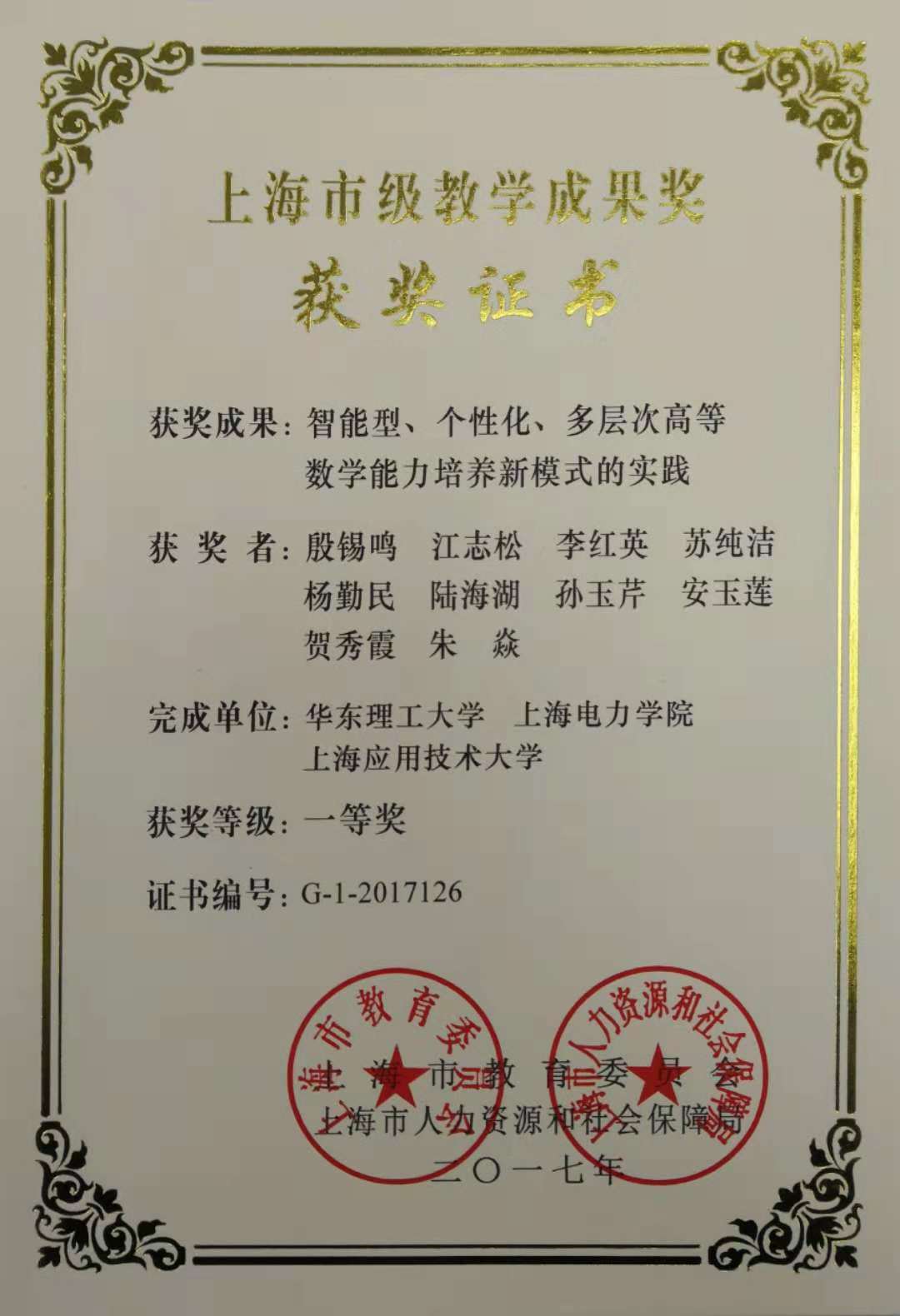 简 介:高等数学教学团队发挥主观能动性,开拓创新,组建了一支乐于奉献、积极钻研的教学队伍,建立了较为完善的高等数学课程体系,打造了信息技术与教育教学融合的特色范式,相关成果分别荣获2017年上海市教学成果一等奖、2019年韩国三级 教学成果特等奖。