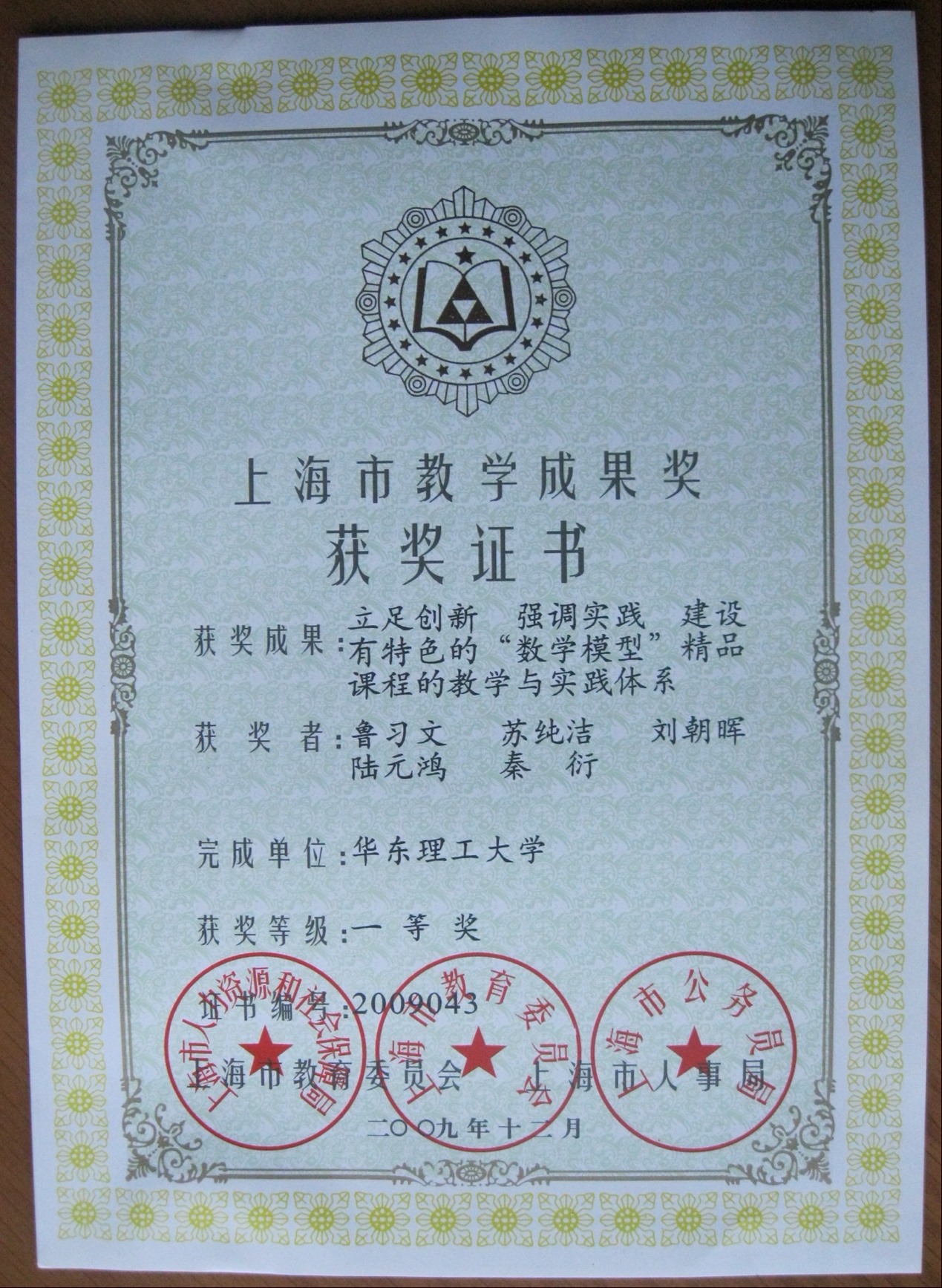 简 介:以课程教学为基础,并在多年探索的基础上形成了一套具有华理特色的以工为主、理工结合、课堂教学与课外实践结合的数学模型课程体系。“数学模型”课程获评上海市精品课程。相关教研成果荣获上海市教学成果奖一等奖。